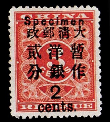 : 加盖“SPECIMEN”样票字样,原加盖字体下移,无胶,较少见,上中品