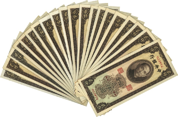 更多民国三十六年(1947年)中央银行关金中华版贰仟圆共20枚图片: