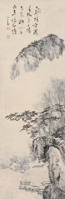 钤印 : 旧王孙、省心斋、心畬书画 大壑隐云雾,乔林多夕阳。几家鄰水石,秋草遍池塘。心畬。