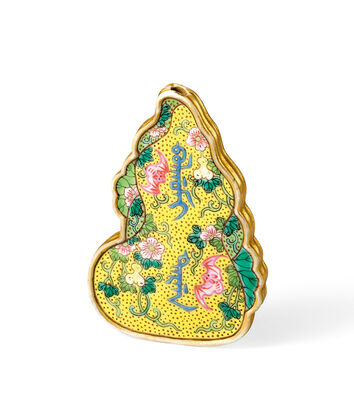 更多清乾隆 黃地粉彩纏枝花卉紋葫蘆式齋戒牌图片: