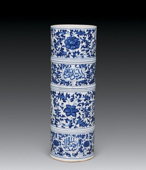 清乾隆 青花阿拉伯文花卉筒形瓶拍卖价格 09年9月10日 编辑 北京保利 取消关注 关注 私信 拍卖信息: 拍品信息: 创作年代 : 清乾隆 尺寸 : 高39cm 拍品分类 : 陶瓷>清代青花瓷器 lot:0474 更多清乾隆 青花阿拉伯文花卉筒形瓶图片: