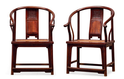 : 此对圈椅,结体肥硕,较通常圈椅大出一号,或是为当时主人量身定制,或是达官贵人为体现身份、地位而作。