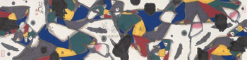 张桂铭的画很精彩,在传统与现代的构成中他讲究简明、节奏、张力、变化、气韵和视觉艺术,达到了一种知觉上的壮丽,他的绘画语言,充分运用了色块和平面的构造,传神达意。